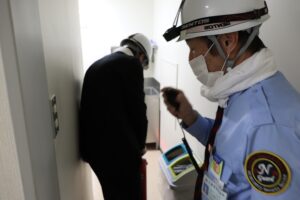 想定ではホテルと隣接する事務所棟の5F給湯室より出火し、初期消火・通報連絡・避難誘導等、一連の訓練を行いました。訓練には、ホテルスタッフをはじめ、北海道自治会館から70名の職員が参加しました。