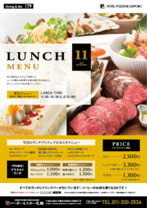 レストラン Dining&Bar 179では、旬の食材をふんだんに使用したシェフ自慢のお料理やお飲み物を、全35品以上取り揃えたランチブッフェとしてご提供しております。