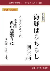 浜中町・厚岸町の特産品を使ったメニューが、ランチブッフェに登場いたします。