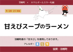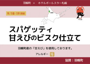 羽幌町の特産品を使ったメニューがランチブッフェに登場いたします。